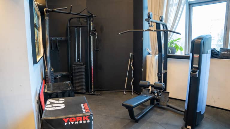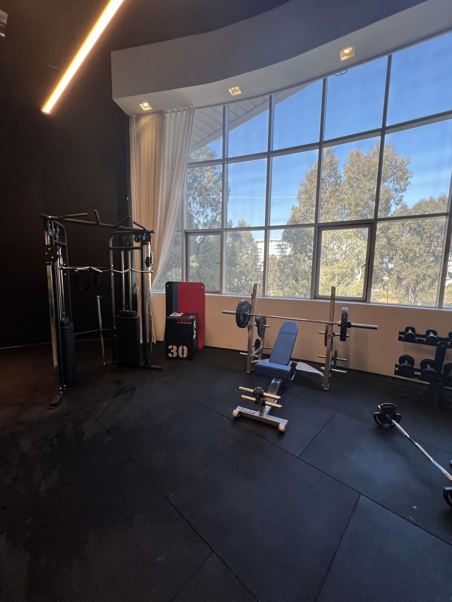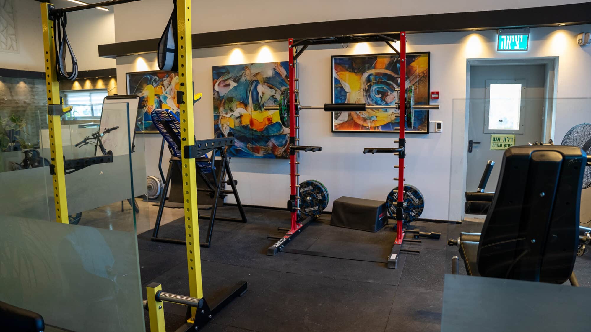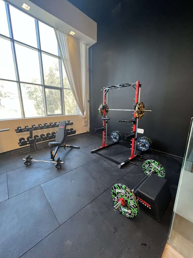 בחלל ניתן למצוא את ציוד הכושר היוקרתי ביותר- ספת לחיצת חזה של Hoist , כלוב משולב סמית צבעוני, מכשור אירובי מגוון, מכונונת כוח דואליות וכומבן אריחי גומי מוחלקים להגנה ושמירת הרצפה של המקום!