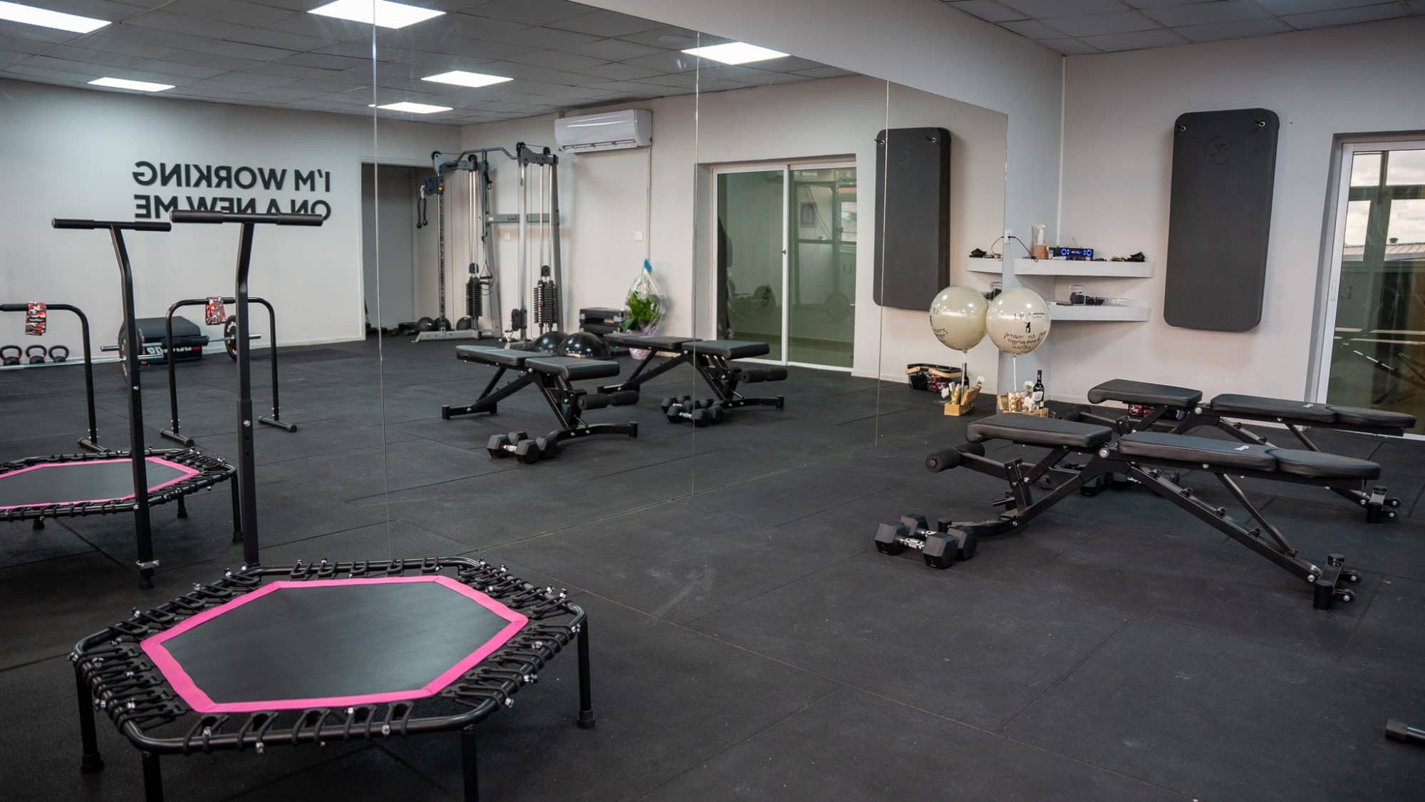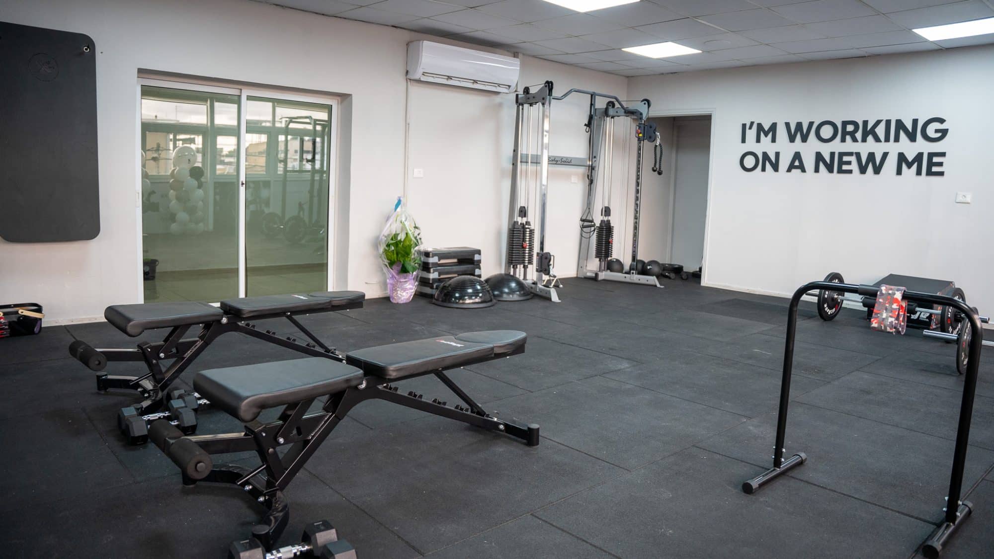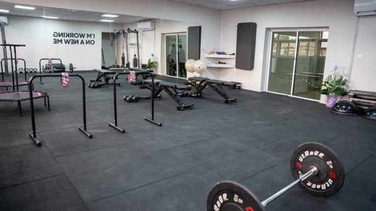 בחלל ניתן למצוא ציוד כושר לסטודיו מהמתקדמים שיש כלוב, קרוס, ספת היפ טראסט המפורסמת שלנו, ומגוון ציוד ספורט בצבע שחור ואריחי גומי שחורים – הלקוחות שלנו יודעים מה הם רוצים 😉