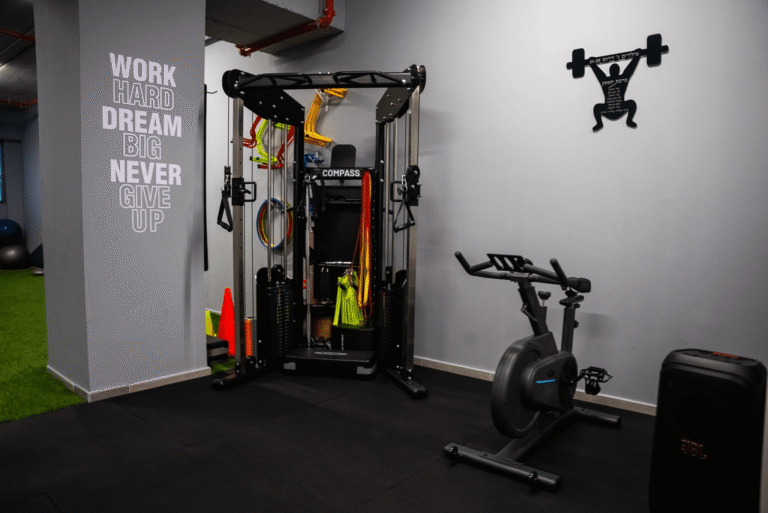 התוצאה הסופית משלבת בין עיצוב צעיר וספורטיבי לבין פונקציונאליות חכמה — מתחם שמעורר השראה, מצויד ברצפת גומי מקצועית, תאורה טבעית, ואווירה אנרגטית שתומכת בכל רמות האימון.