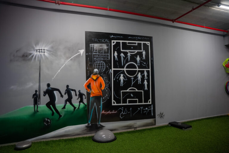 לצורך כך, תכננו והקמנו מתחם המאובזר בציוד כושר מהשורה הראשונה, עם חלוקה חכמה בין אזורי כוח, פונקציונאליות ואזור חופשי לאימוני כדורגל.