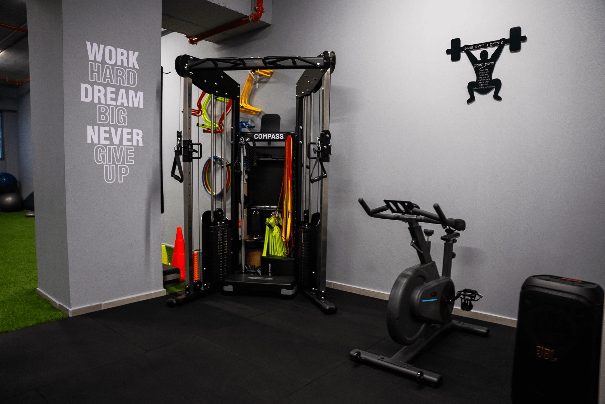 התוצאה הסופית משלבת בין עיצוב צעיר וספורטיבי לבין פונקציונאליות חכמה — מתחם שמעורר השראה, מצויד ברצפת גומי מקצועית, תאורה טבעית, ואווירה אנרגטית שתומכת בכל רמות האימון.