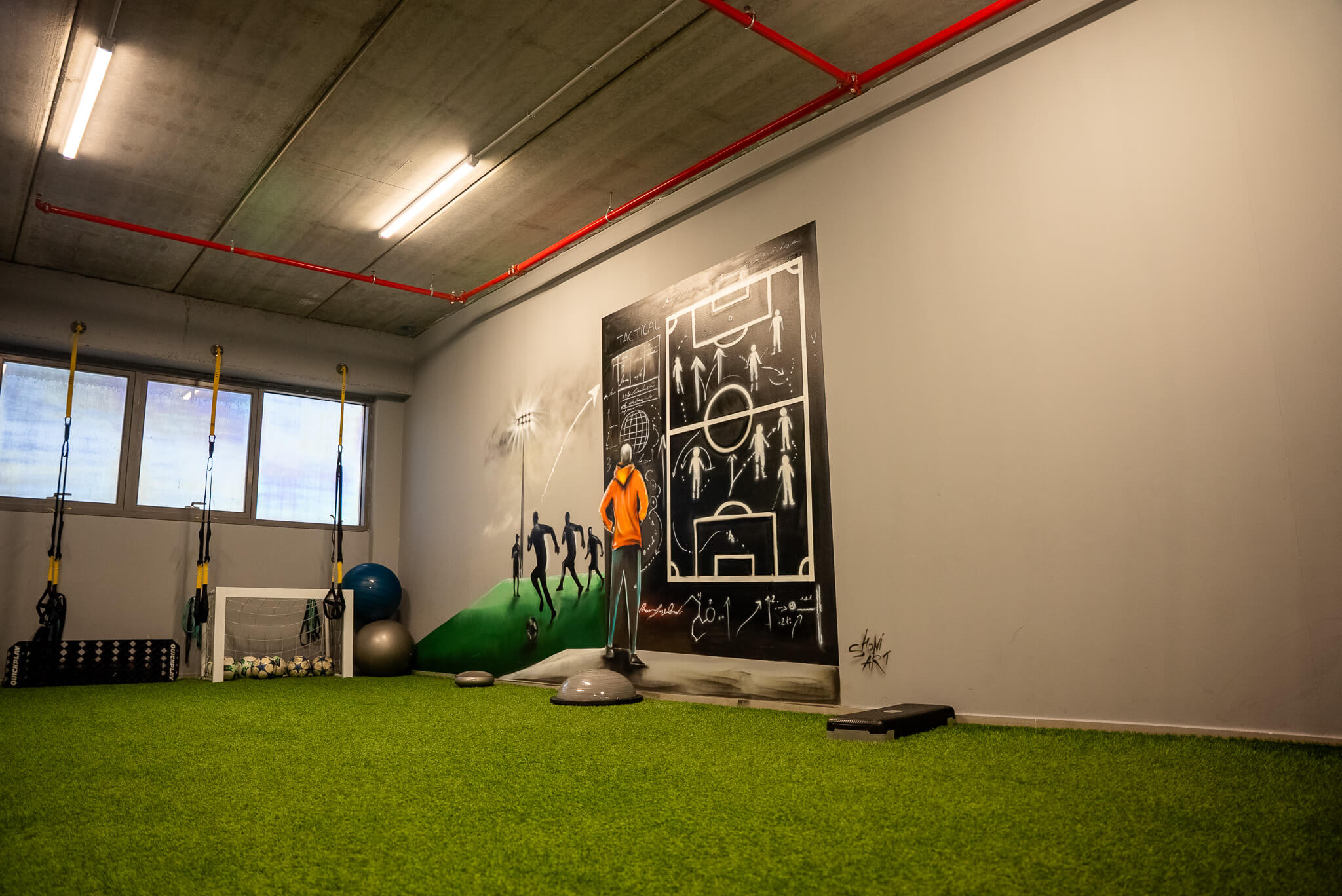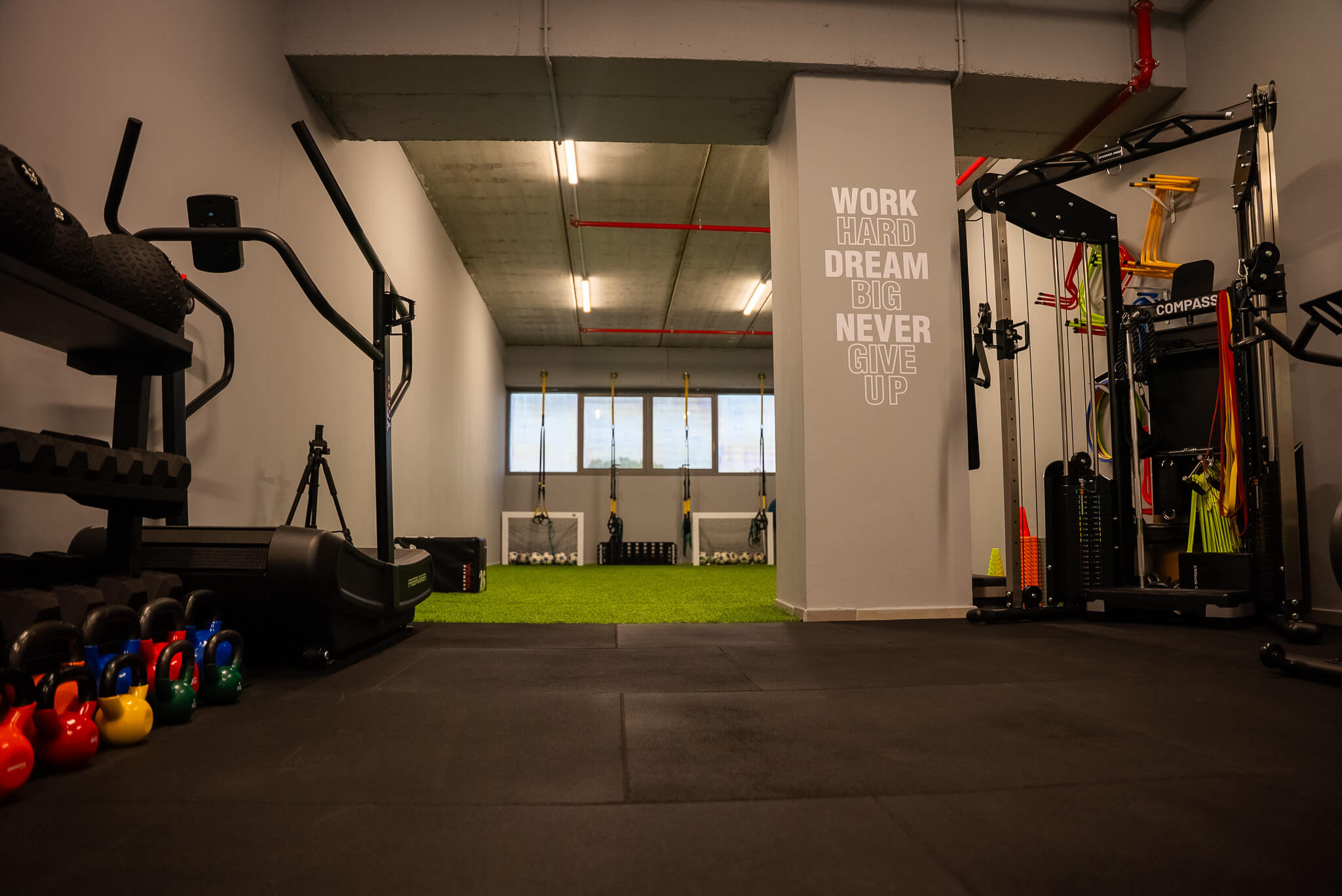 לצורך כך, תכננו והקמנו מתחם המאובזר בציוד כושר מהשורה הראשונה, עם חלוקה חכמה בין אזורי כוח, פונקציונאליות ואזור חופשי לאימוני כדורגל.