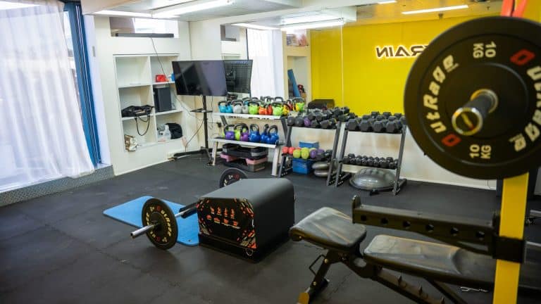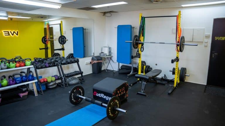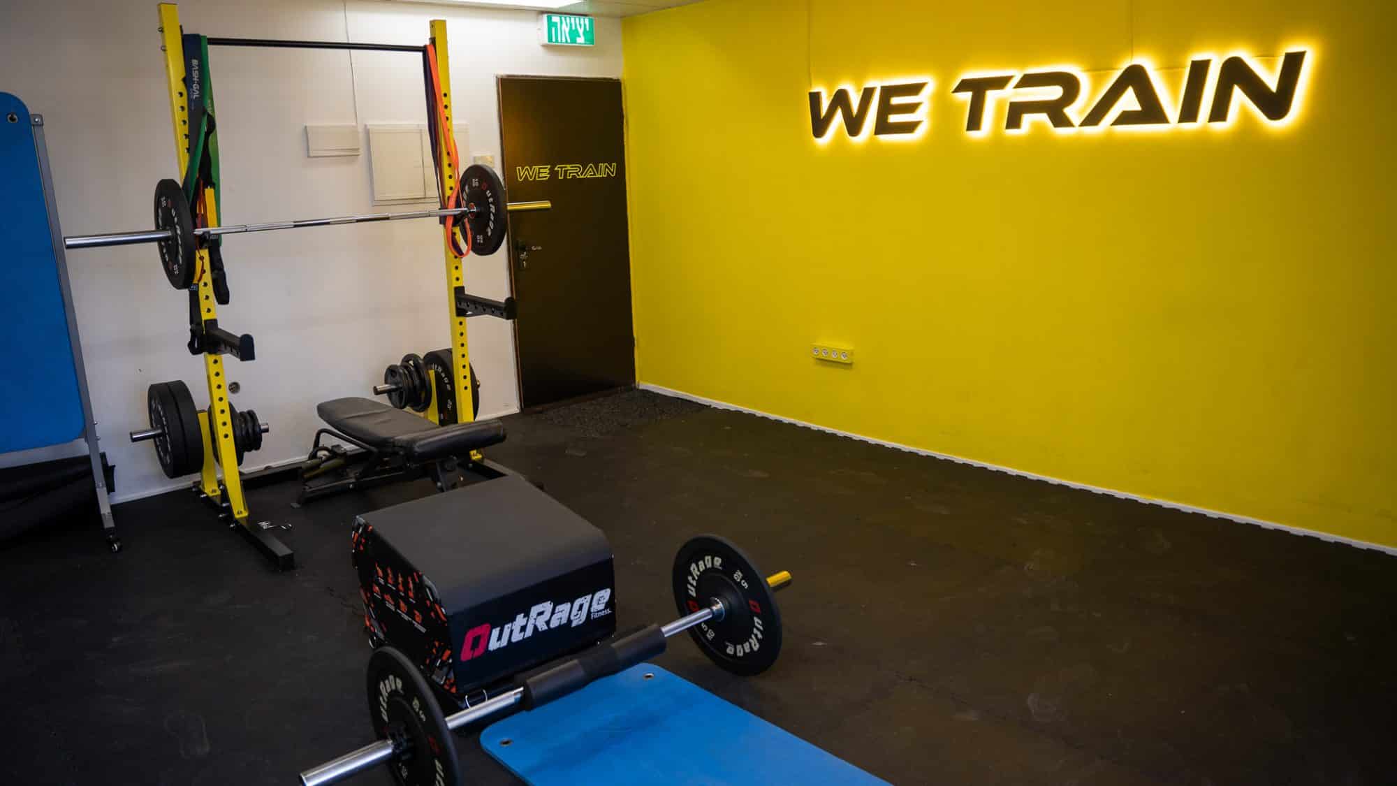 סטודיו אימונים WE TRAIN להשכרה למאמני כושר- כלוב משקולות, ספת היפ טרסט, משקולות וכו’