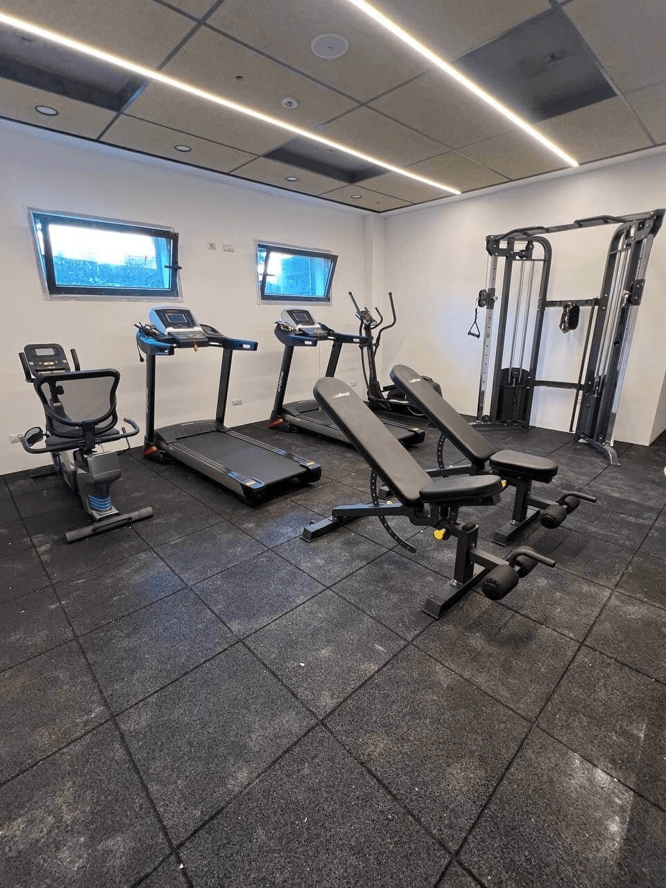 הקמנו חדר כושר פנימי מקצועי בבניין מגורים בת ים עבור הדיירים — סטודיו שנועד לתת מענה איכותי לאימון כוח, אירובי ופונקציונלי, תוך התאמה מלאה לחלל קהילתי.
