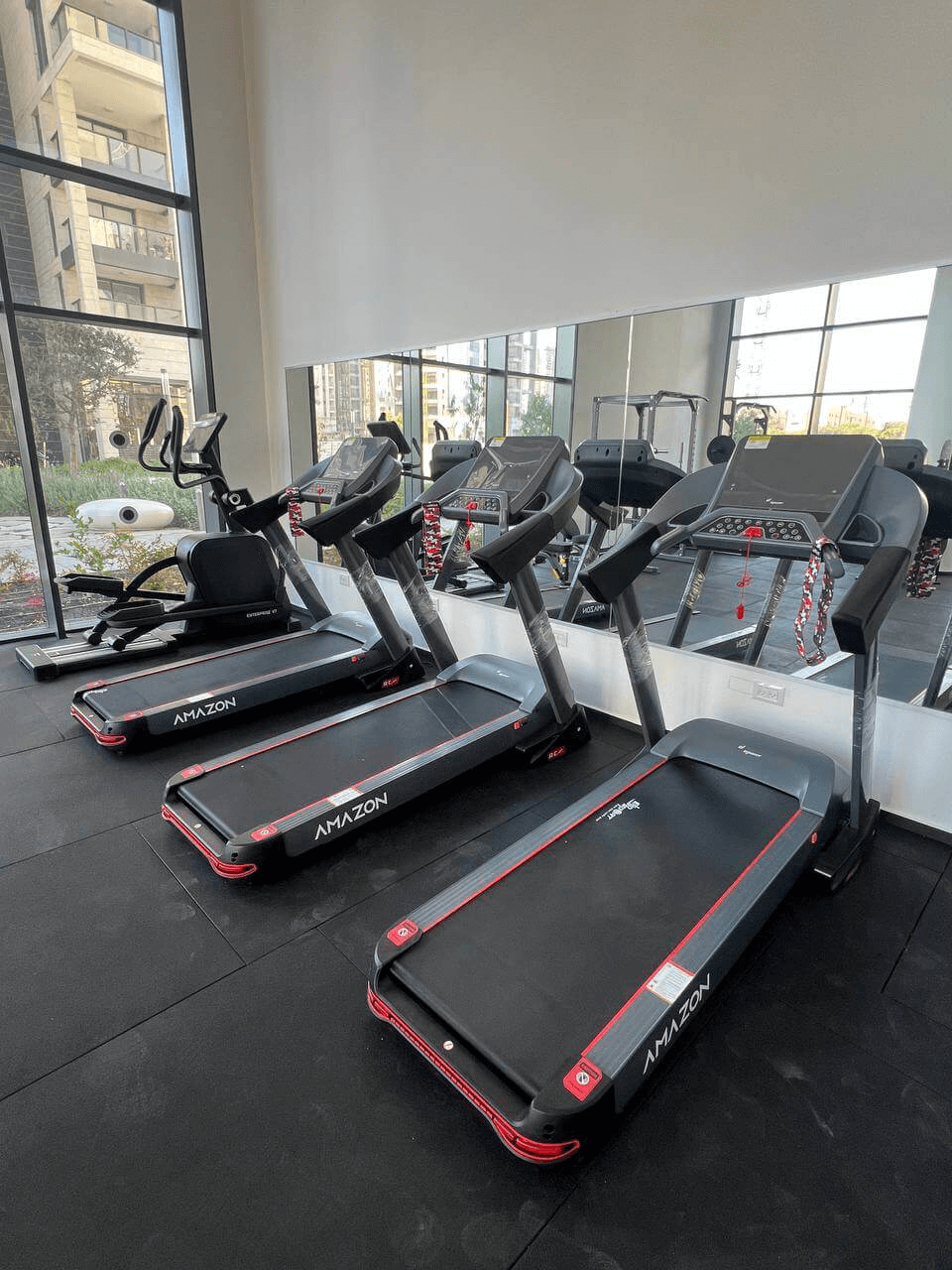 ✔ רחבת אירובי מקצועית הכוללת מסלול ריצה, אליפטיקל ואופני כושר עם משענת