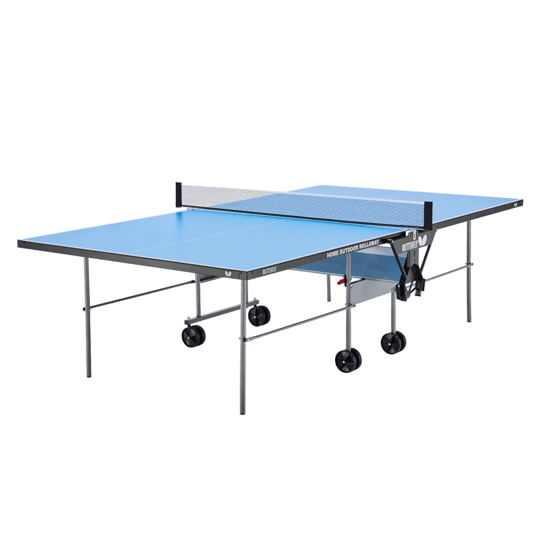 Butterfly Home Rollaway Outdoor הוא שולחן פינג פונג חוץ איכותי המיוצר בגרמניה, עמיד לכל מזג אוויר ומתאים להצבה בחוץ לאורך השנה.