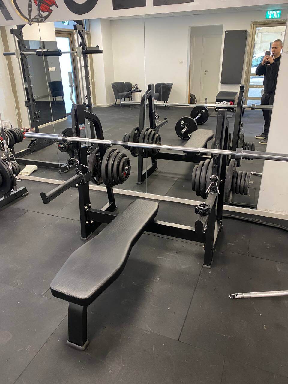 ספת לחיצת חזה אולימפית בעיצוב שטוח – מיועדת לאימון כבד ומדויק בחדרי כושר מקצועיים.