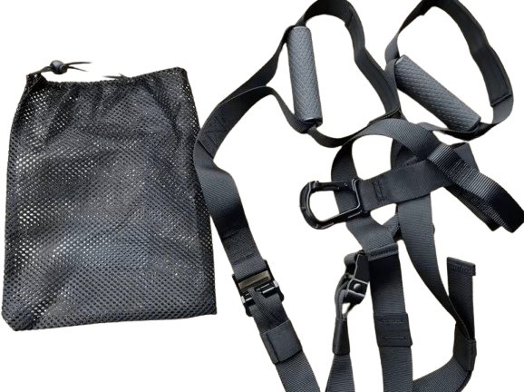 סט רצועות דמוי TRX מקצועי שחור תוכנן עבור כל מי שמחפש אימון פונקציונלי אפקטיבי, נייד ומקצועי, שיכול להתבצע בכל מקום ובכל זמן.