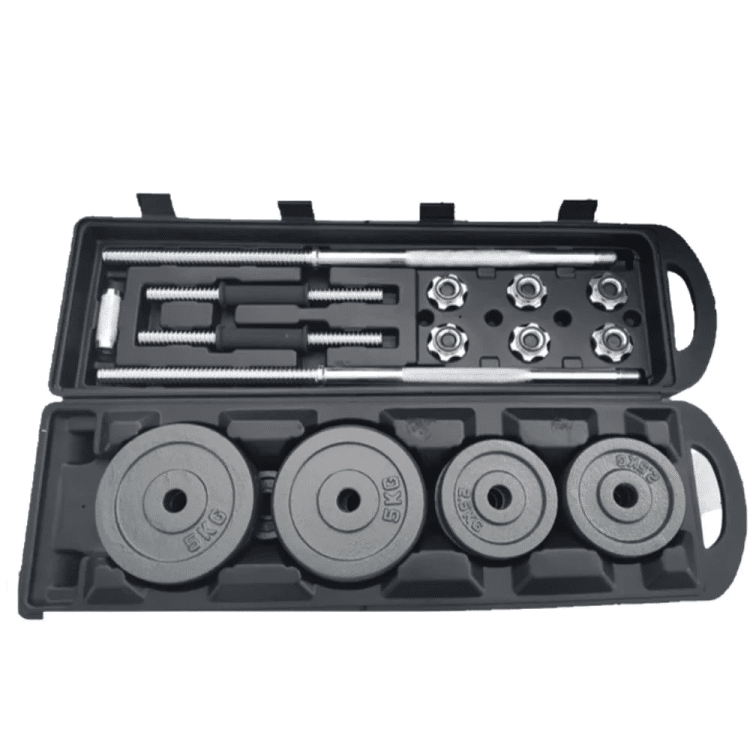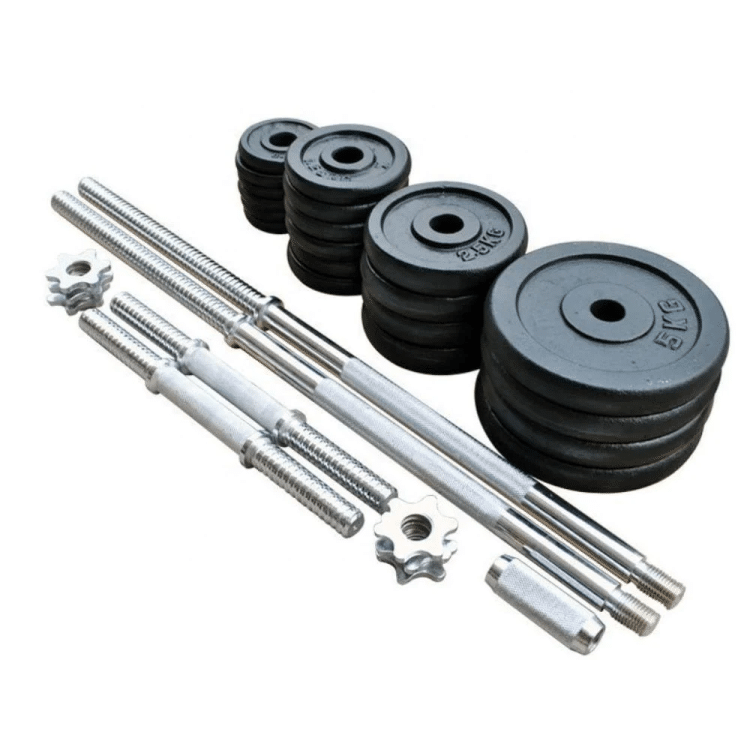 המערכת כוללת מגוון רחב של צלחות משקל, שני מוטות קצרים ומוט ארוך מתברג – כך שתוכלו לעבור בין תרגילי ידיים, כתפיים, חזה ורגליים בקלות.